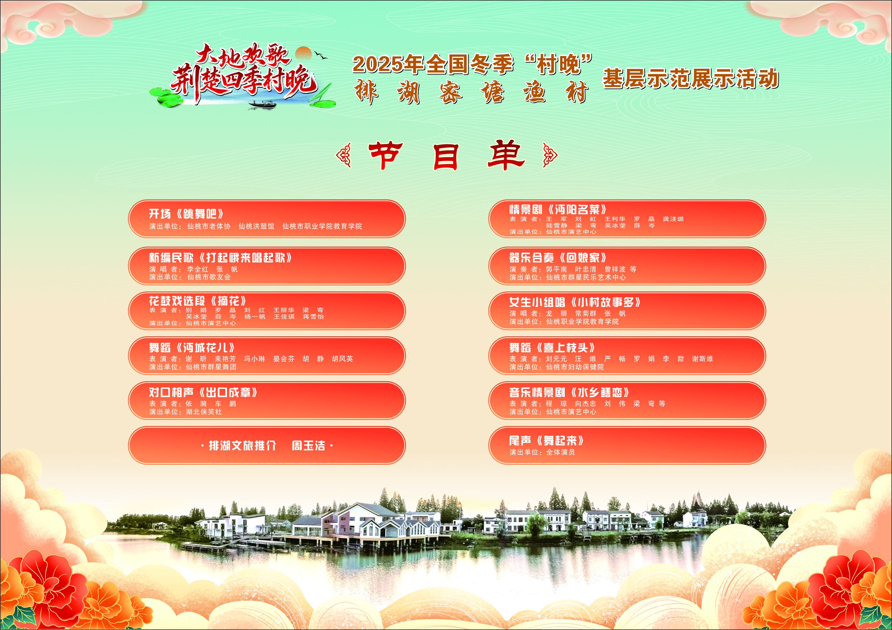 在这冬日暖阳中,一场属于我们水乡的文化盛宴即将拉开帷幕!2025年全国冬季“村晚”示范展示活动,将于11月25日下午14:30在风景如画的排湖密塘渔村火热上演!